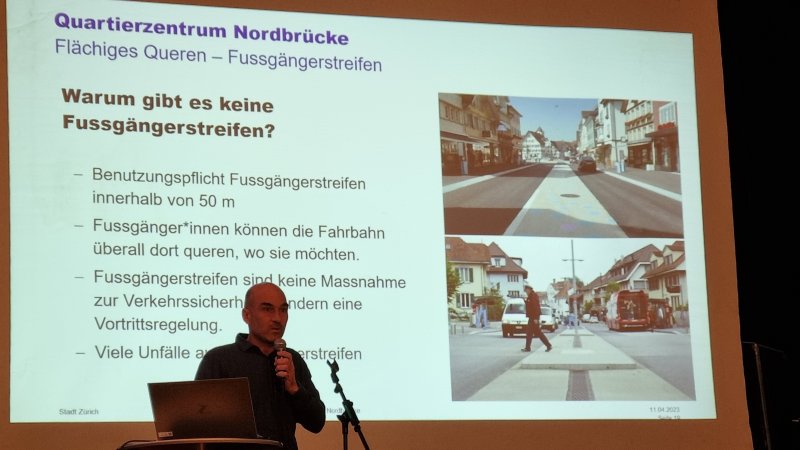 An der Paneldiskussion des Verantwortlichen des Tiefbauamtes mit dem Quartiervereinspräsidenten entstand dann der Vorschlag, dass die drei Fussgängerstreifen versuchsweise wieder angebracht werden, damit man abschliessend beurteilen kann, ob sich das Sicherheitsgefühl der Nutzer wieder steigert.