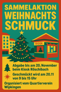 Wir brauchen noch mehr schönen Schmuck (vom Quartier fürs Quartier) für unseren Christbaum auf dem Röschibachplatz.